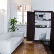 Con una superficie di 45 metri quadrati, è l'ideale per una coppia che desidera un soggiorno confortevole e romantico nel cuore della città eterna. Il soggiorno è arredato con gusto e presenta un angolo cottura che si nasconde elegantemente dietro una porta. La camera matrimoniale ampia, luminosa e lussuosa, offre un letto matrimoniale, un guardaroba spazioso e un'atmosfera intima e accogliente. Il bagno è completo di un'ampia doccia e di arredi raffinati. L'appartamento è inoltre dotato di mobili moderni e funzionali.