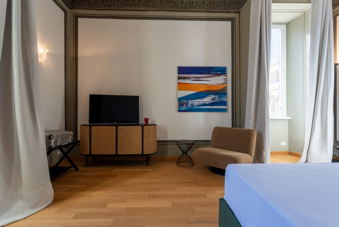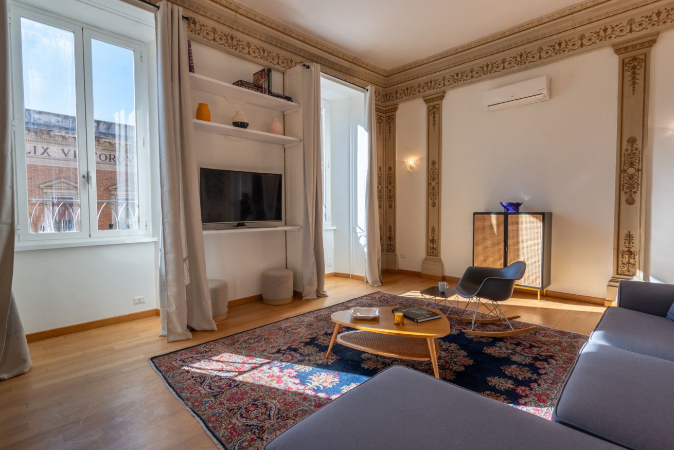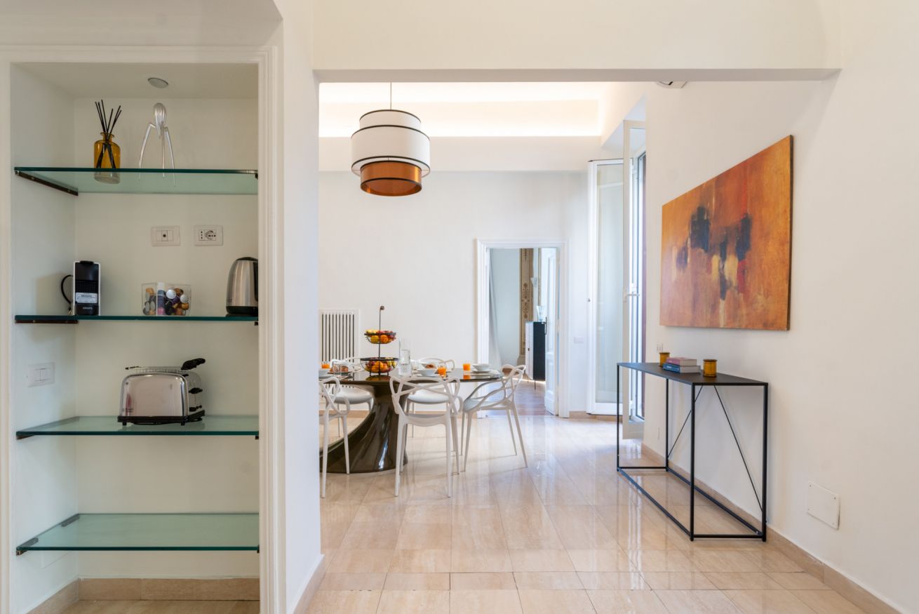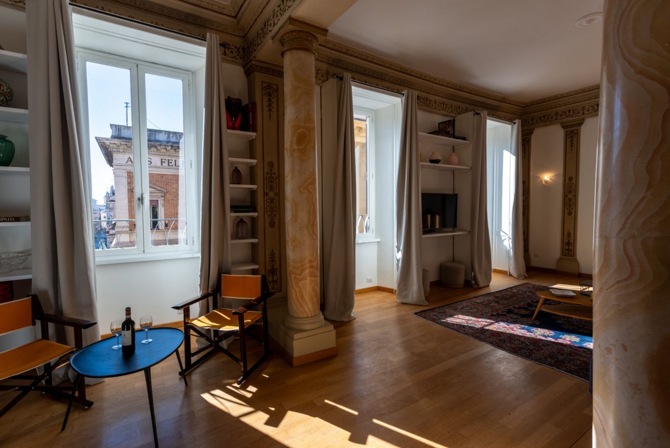 Immobile dotato di terrazza con splendidi affacci a pochi passi dal Palazzo del Quirinale, Piazza Barberini e Via Veneto. Ottimamente rifinito con soffitti affrescati ed elementi di arredo moderni.