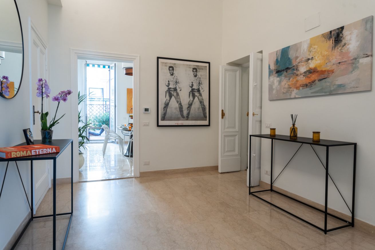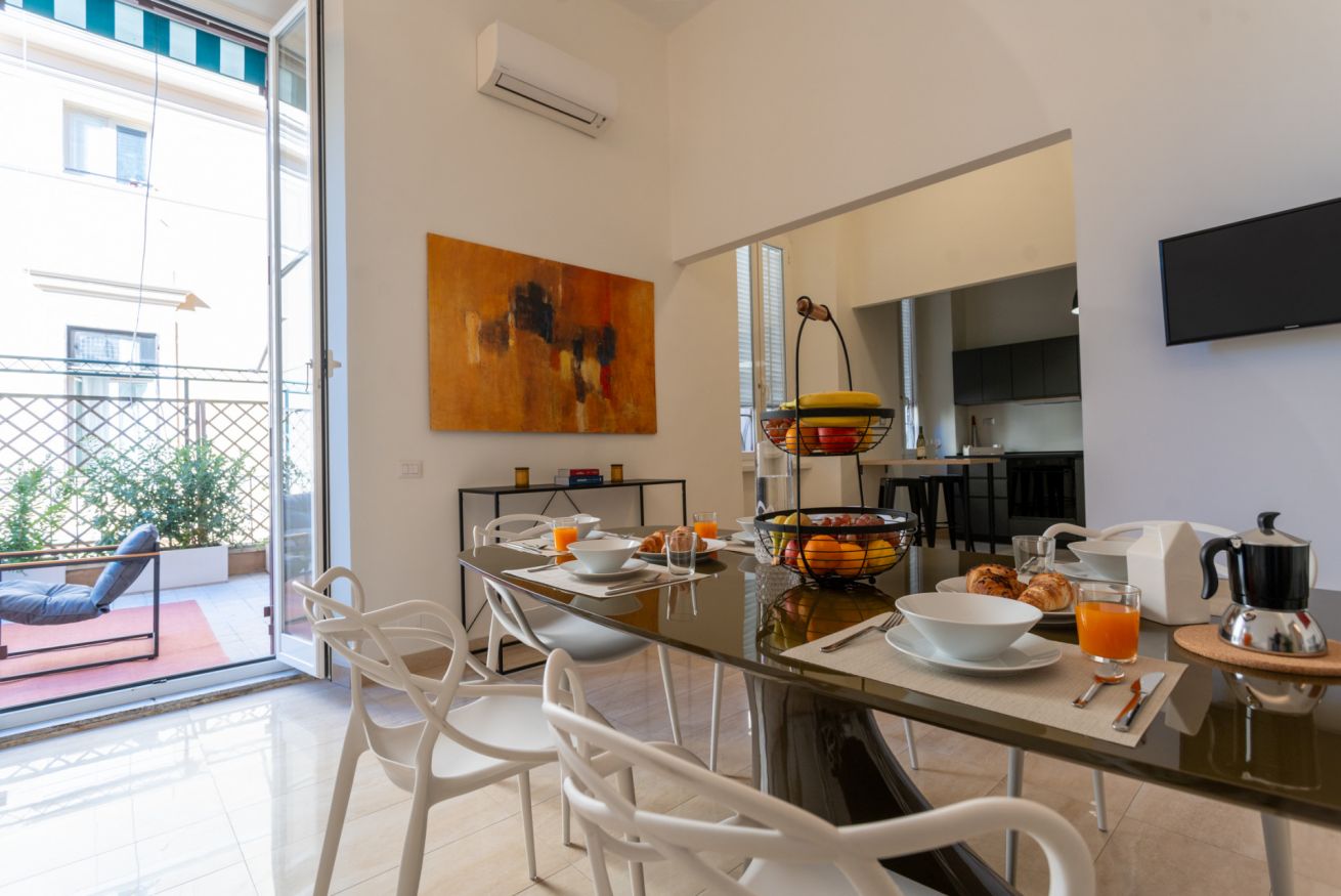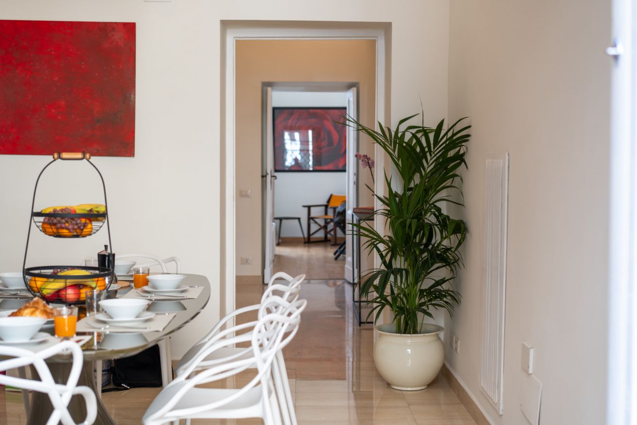 Appartamento di 180 mq e 40mq di terrazza dove trascorrere splendidi momenti all’aperto godendo del clima mite romano. Tre camere da letto matrimoniali, tre bagni con doccia e un ampio divano letto possono ospitare comodamente 8 ospiti. La sala da pranzo ospita comodamente tutti gli ospiti dell’appartamento e in terrazza troverete a vostra disposizione un comodo salottino per trascorrere del tempo all’aperto.