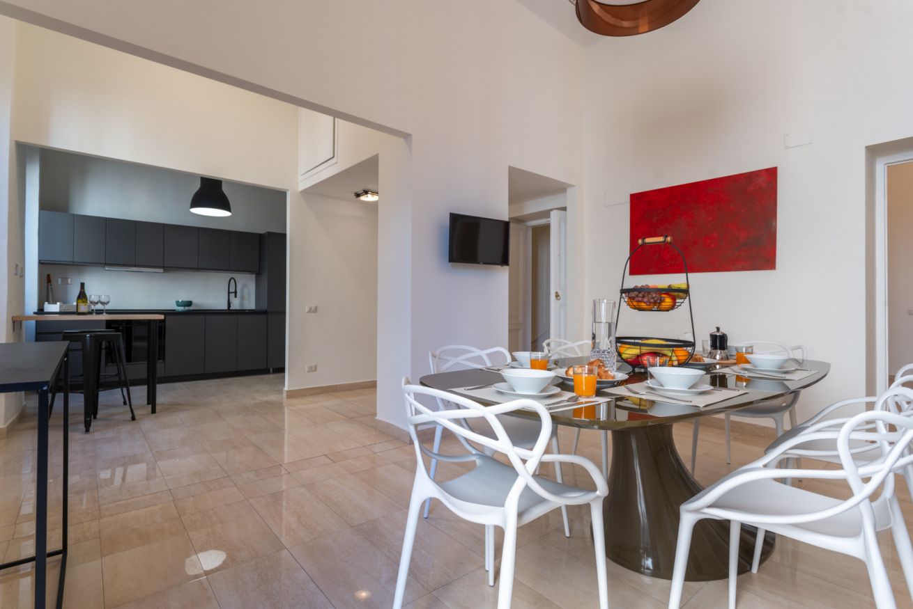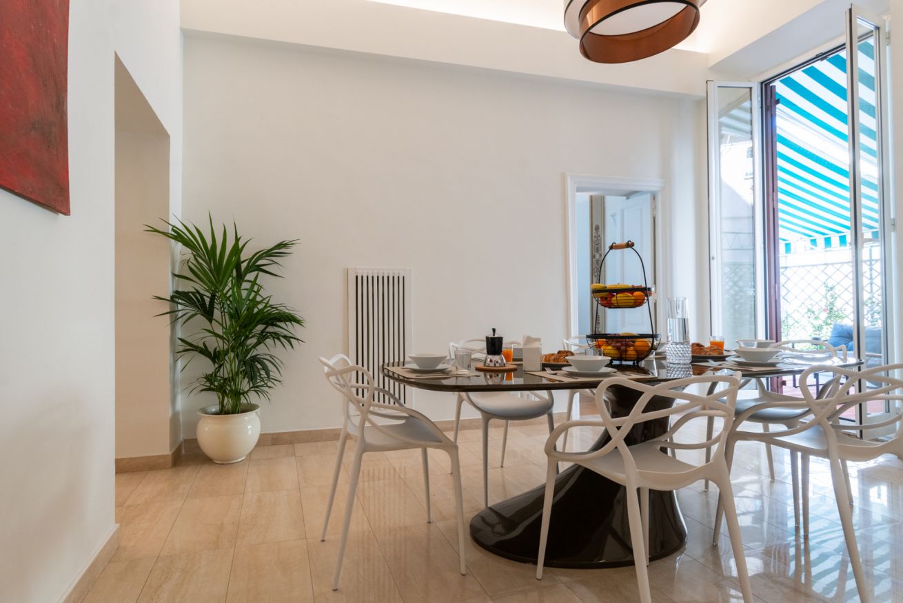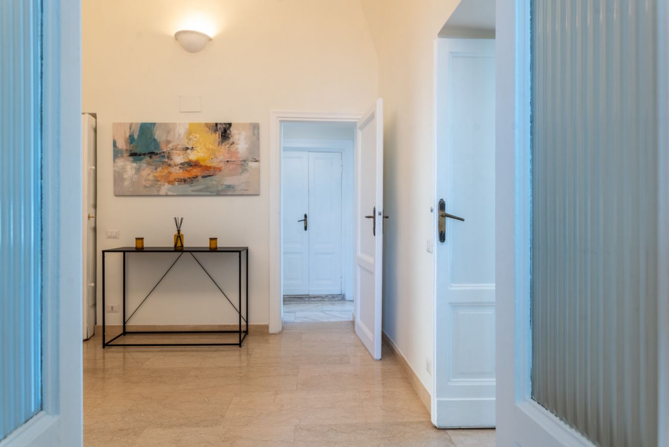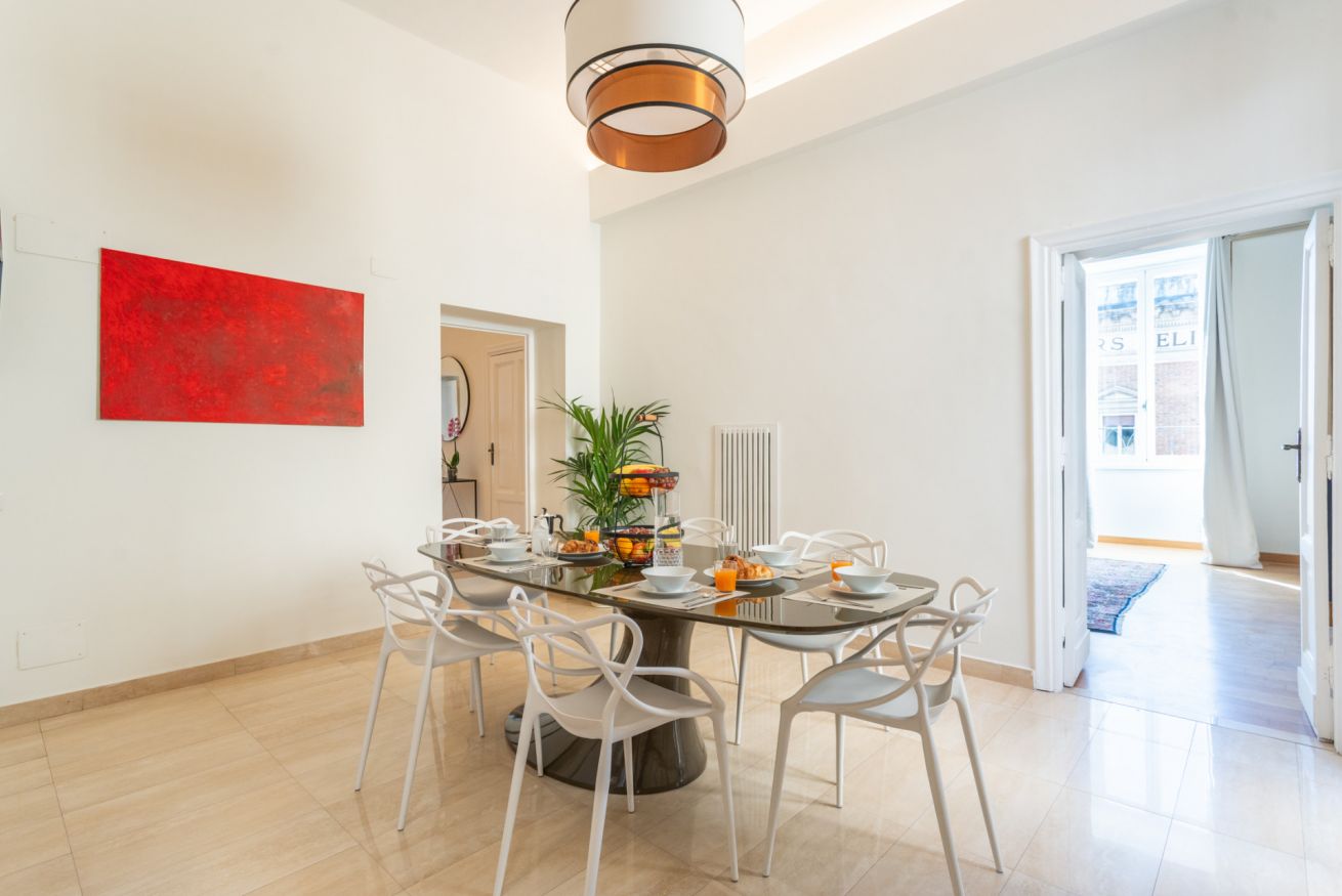 Appartamento di 180 mq e 40mq di terrazza dove trascorrere splendidi momenti all’aperto godendo del clima mite romano. Tre camere da letto matrimoniali, tre bagni con doccia e un ampio divano letto possono ospitare comodamente 8 ospiti. La sala da pranzo ospita comodamente tutti gli ospiti dell’appartamento e in terrazza troverete a vostra disposizione un comodo salottino per trascorrere del tempo all’aperto.